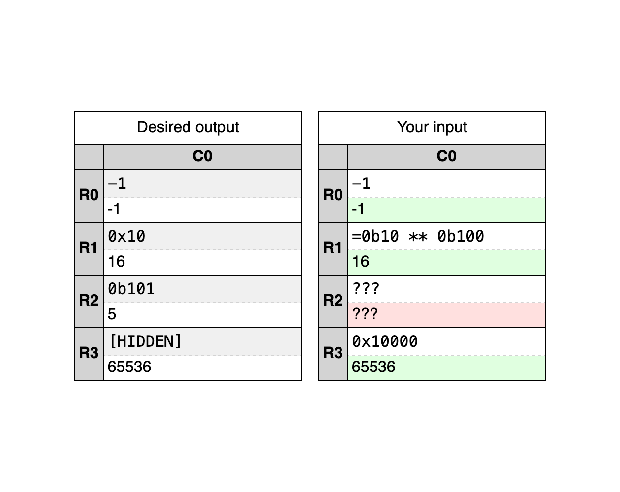 Spreadsheet cells support standard mathematical expressions and function calls, as well as references to individual cells and ranges of cells. Cell references use R1C1 reference style notation.